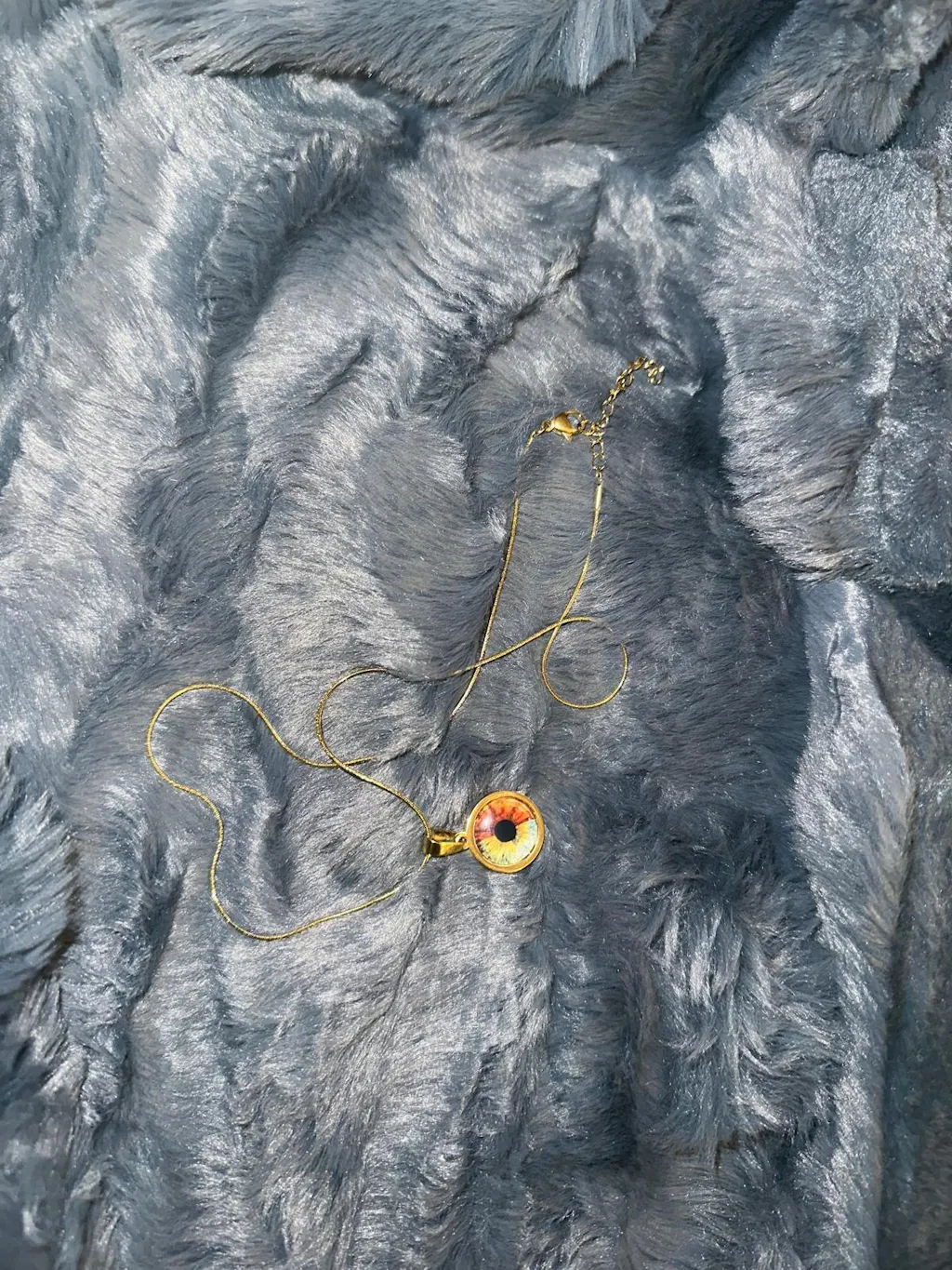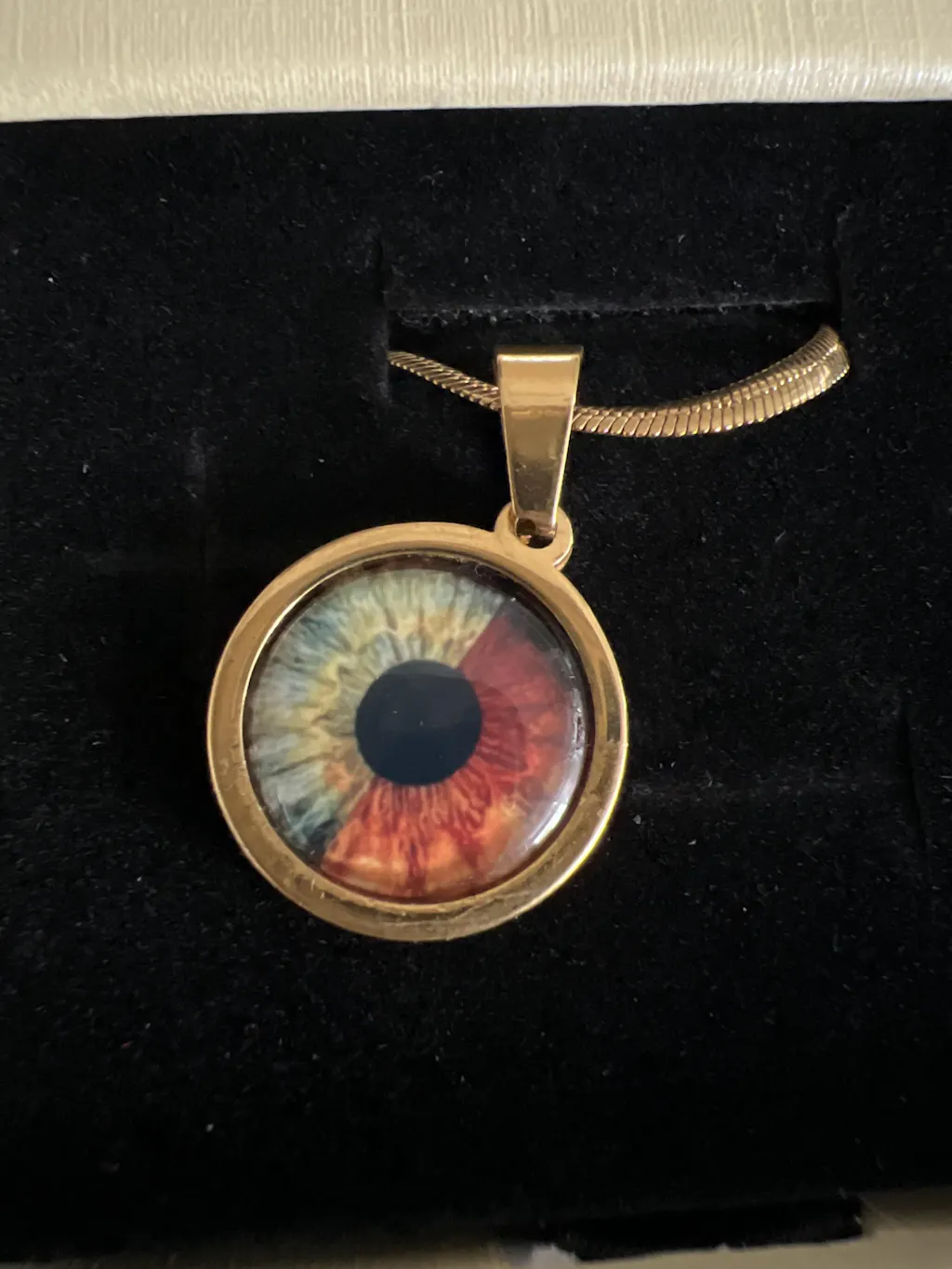 Der Anhänger ist ein 14 mm grosses Kunstwerk mit deinem individuellen Irisbild, geschützt unter einer klaren Harzkuppel.